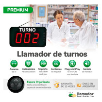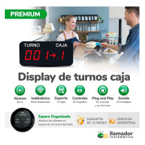 Sistema de Turnos Inalámbrico Premium ideal para gestionar filas en cafeterías, clínicas y oficinas. Incluye Display Digital (TURNO) y Expendedor de Números compacto (23.5 x 15.0 x 5.5 CM). Sus llamadores tienen pila de 2 años de duración y un alcance de 60 metros. El sistema se entrega configurado (PLUG & PLAY) y listo para usar.