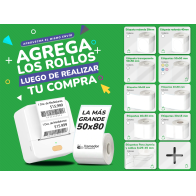 • 5 rollos de etiquetas térmicas de 50 x 50 mm, con un total de 150 etiquetas . (Colores: Amarillo, Azul, Blanco, Rosa, Verde Claro)